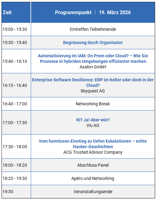 Viele Unternehmen stehen vor der Herausforderung, dass Prozesse in Bezug auf Identity & Access Management nicht (genug) automatisiert sind – und das teils unabhängig davon, ob Sie bereits ein IAM-Tool im Einsatz haben oder nicht. Häufig existieren hybride Umgebungen und hinzu kommt die Frage in Bezug auf das Bereitstellungsmodell für IAM selbst: On Prem oder doch «mutig» in die Cloud? Wir zeigen Ihnen auf, welche Ansätze für wen warum sinnvoll sind & wie Sie mit und ohne bestehendes IAM-Tool einen höheren Automatisierungsgrad im IAM erreichen!